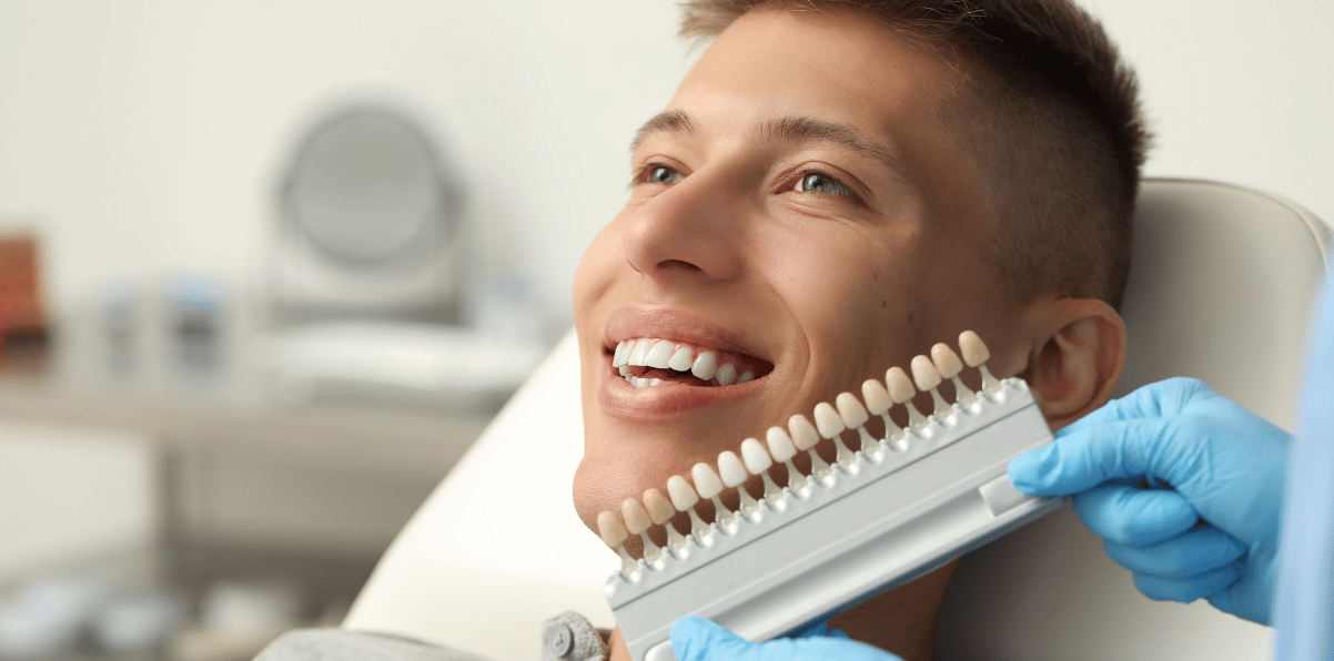 Our veneers are made from porcelain, which looks almost identical to real tooth enamel. Porcelain is translucent and can be matched to the shade of your teeth. If you are having a full smile makeover with veneers, we can help you choose a brand-new shade for your new smile.